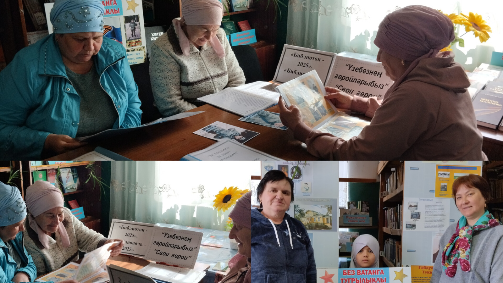 Чара Ватанны саклаучылар елына һәм Бөек Җиңүнең 80 еллыгына багышланган иде. Акциянең темасы - «Үз геройларыбыз». Чарада катнашучылар Бөек Ватан сугышы ветераннарына, тыл хезмәтчәннәренә, сугыш балаларына багышланган альбомнардагы мәгълүмат белән таныштылар, шулай ук чарага тематик күргәзмә дә әзерләнгән иде. Китапханәдә авылдан махсус хәрби операциядә катнашучы егетләргә багышлап «Без Ватанга тугрылыклы» дип исемләнгән стенд эшләнелде, бу егетләргә хөрмәт күрсәтү генә түгел, яшьләрдә патриотик аң формалаштыруга да ярдәм итә. Ахырдан чарада катнашучылар тыныч тормыш хакына гомерләрен биргән ватандашларын бер минут тынлык белән искә алдылар.
