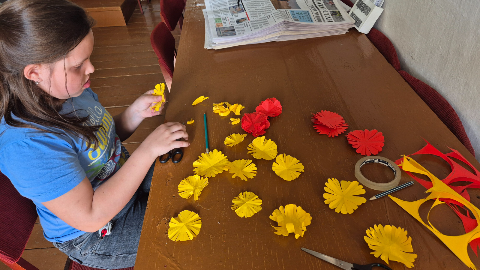 Иңнәренә төшкән авыртуны һәм газапларны кичерүчеләр җирдә бик аз калып бара. Китапханәдә әлеге вакыйга уңаеннан «Безнең ветераннар өчен чәчәкләр» дип исемләнгән мастер-класс узды. Китапханәче «Оста каләмнәр» клубы балаларына кәгазьдән ясалма чәчәкләр ясау осталыгының барлык серләрен сөйләде. Күңел һәм мәхәббәт белән башкарылган барлык эшләрне балалар тыл хезмәтчәннәренә бүләк итәчәкләр.