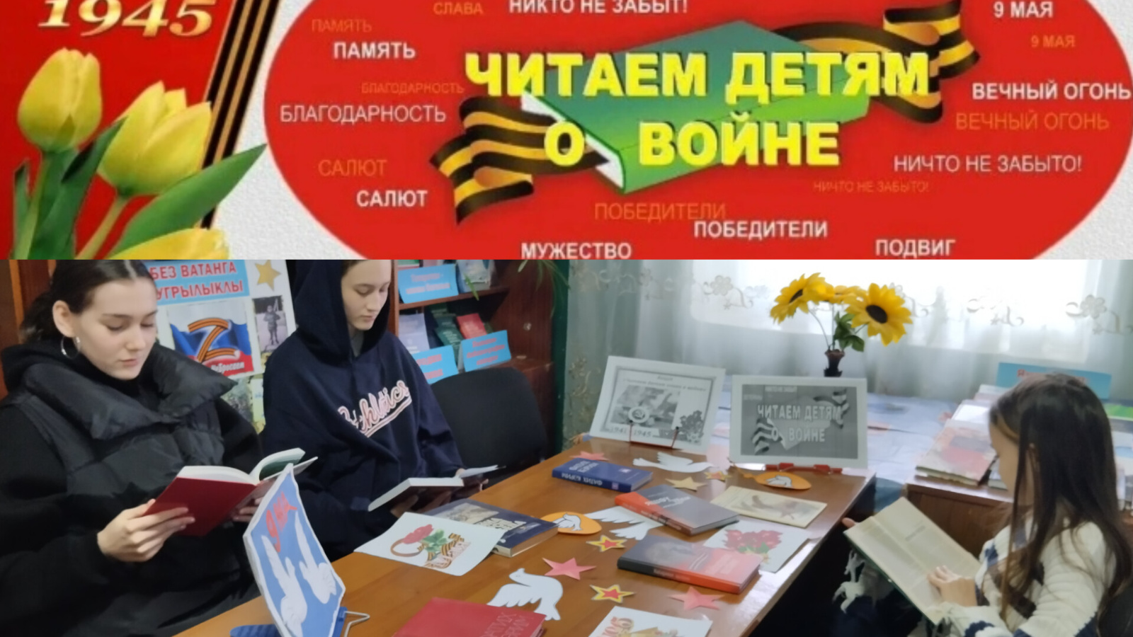 Урта Мишә авылы китапханәсе клуб белән берлектә әлеге акциягә кушылдылар. Китапханәче укучыларга Бөек Ватан сугышы, ул елларда совет халкының батырлыгы турында сөйләде. Укучылар Муса Җәлил, Фатих Кәримнең шигырьләрен укыдылар. Шигырьләр буенча фикер алышынды, укучылар китапханәченең сорауларына җаваплар бирделәр. Чара «Утлы еллар кайтавазы» дип исемләнгән китап күргәзмәсенә күзәтү белән тәмамланды.
