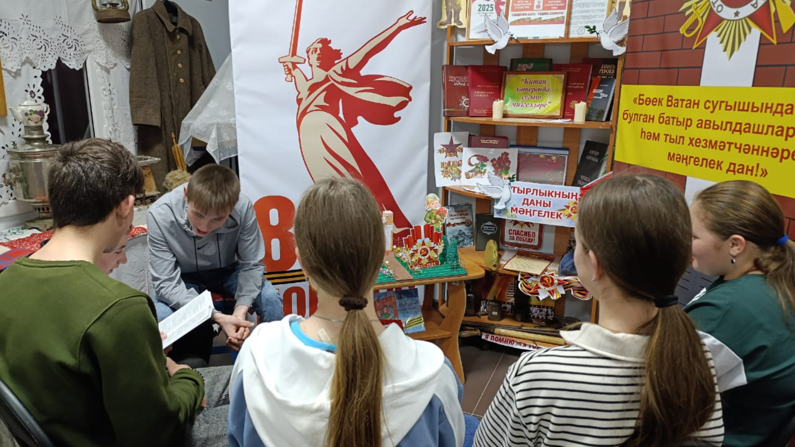 Китапханәче якташларыбызның батырлыклары турында сөйләде, «Китап хәтерендә сугыш мизгелләре» исемле күргәзмәгә күзәтү үткәрде. Акция барышында Бөек Ватан сугышы турындагы шигырьләр укылды. Шулай ук, укучылар сугыш һәм тыл ветераннарына багышлап ясалган альбомнар белән таныштылар. Ахырдан Бөек Ватан сугышында һәлак булган каһарманнарны бер минут тынлык белән искә алдылар.