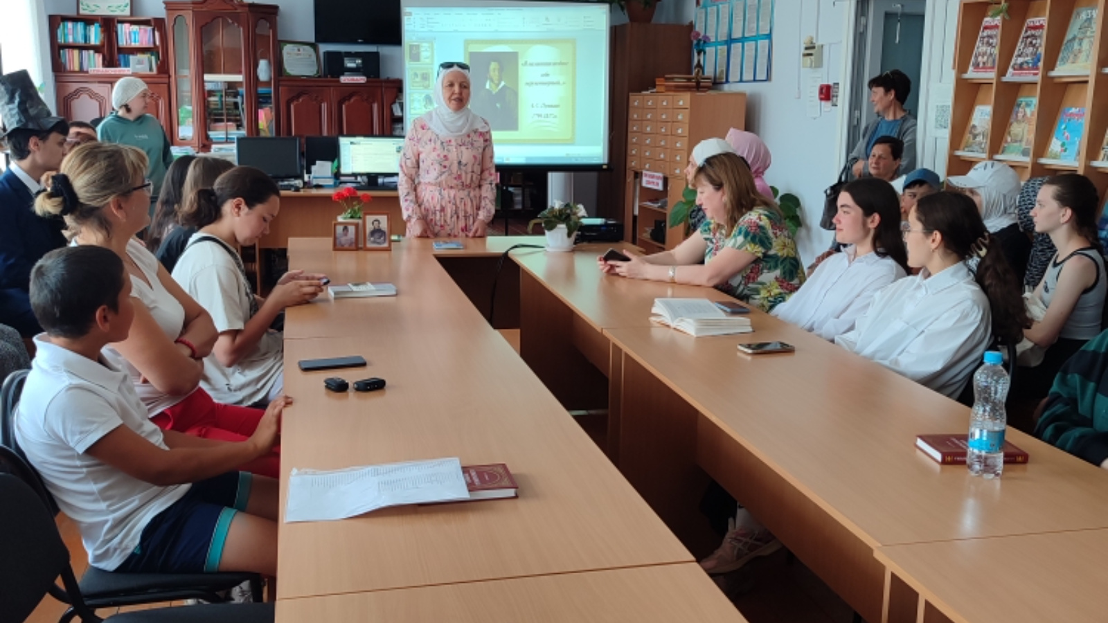 Әдәби сәгать барышында Пушкинның тормышы һәм иҗаты турында мавыктыргыч презентация күрсәтелде. Катнашучылар аның шигырьләрен һәм әсәрләреннән өзекләрне сәнгатьле итеп укып, шигърият дөньясына чумдылар. Теләче урта мәктәбенең рус теле һәм әдәбияты укытучысы Нуртдинова Е.Я. чыгышы аеруча игътибарны җәлеп итте, ул Пушкин иҗатының рус әдәбияты өчен әһәмияте турындагы фикерләре белән уртаклашты. Моннан тыш, китапханәдә А.С. Пушкинның тормышына һәм иҗатына багышланган китап күргәзмәсе оештырылды, анда теләгән һәркем аның әсәрләре белән таныша һәм аның мәдәнияткә керткән өлеше турында күбрәк белә алды. Китапларга күзәтү әдәби сәгатькә бик яхшы өстәмә булды, катнашучыларны бөек шагыйрь мирасын укуга һәм өйрәнүгә рухландырды. Чара җылы һәм дустанә мөхиттә узды, анда катнашучыларның барысында да якты тәэсирләр һәм А.С. Пушкин иҗатына кабат мөрәҗәгать итү теләге калдырды.