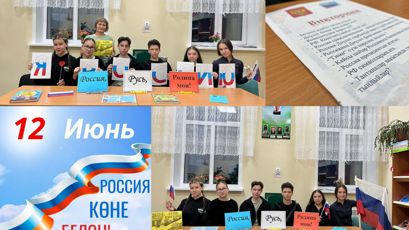 Викторина сорауларына җавап биреп, яшүсмерләр Россия символлары һәм тарихы турында үзләренең яхшы белемнәрен күрсәттеләр. Шулай ук Ватаныбыз, илебезне яратучы һәм горурланучы халык турында җырлар һәм шигырьләр яңгырады.