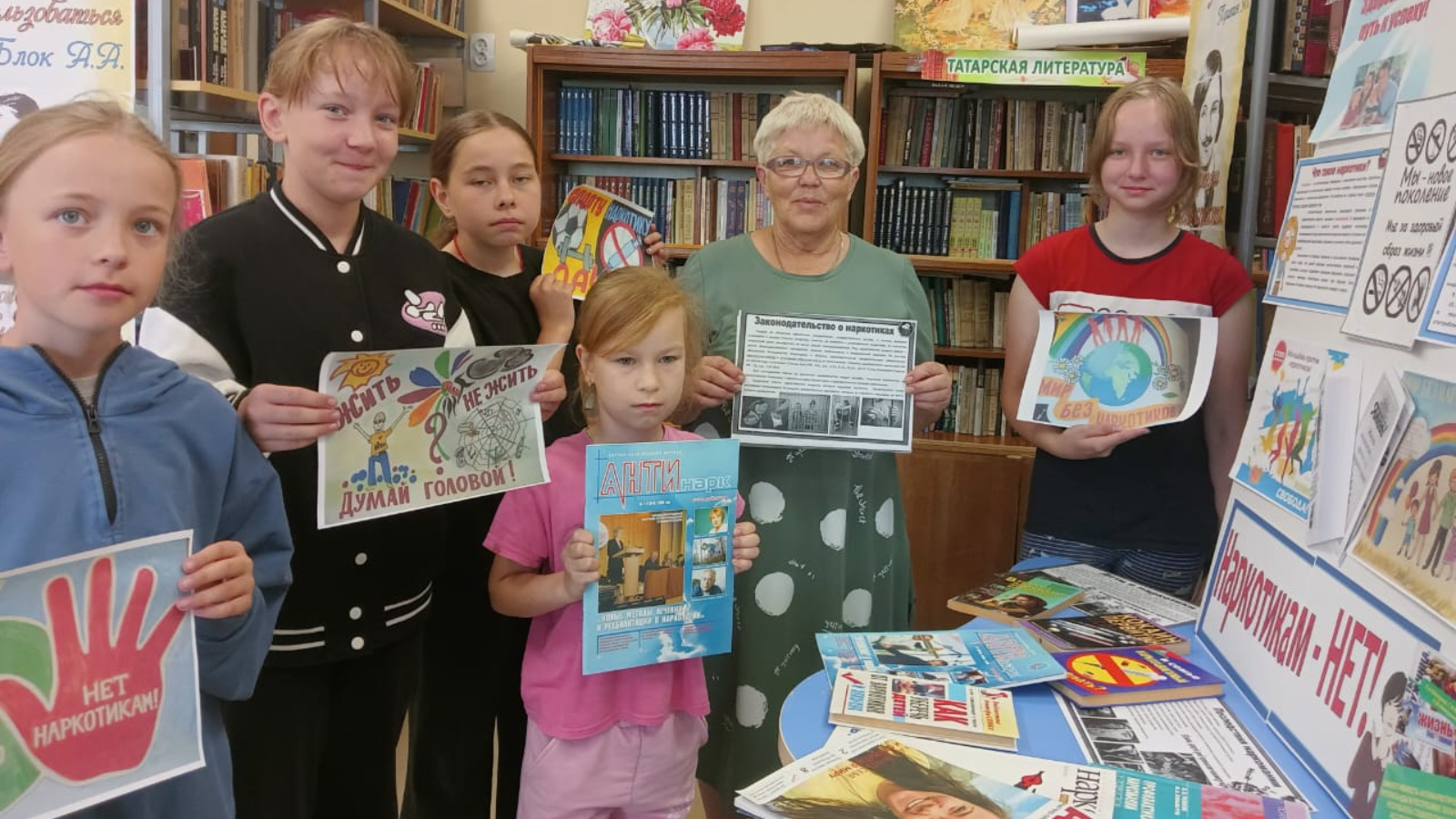 Китапханәдә «Наркотикларга юк дип эйт» исемле күргәзмә оештырылды. Анда әлеге проблеманы аңларга һәм фикер алышырга ярдәм итүче китаплар, брошюралар, журнал мәкаләләре һәм буклетлар тәкъдим ителде. Бу чаралар балаларның һәм яшүсмерләрнең сәламәт яшәү рәвешен сайлавына ярдәм итәргә, наркотикларга каршы аңлату эшен көчәйтергә юнәлдерелгән.