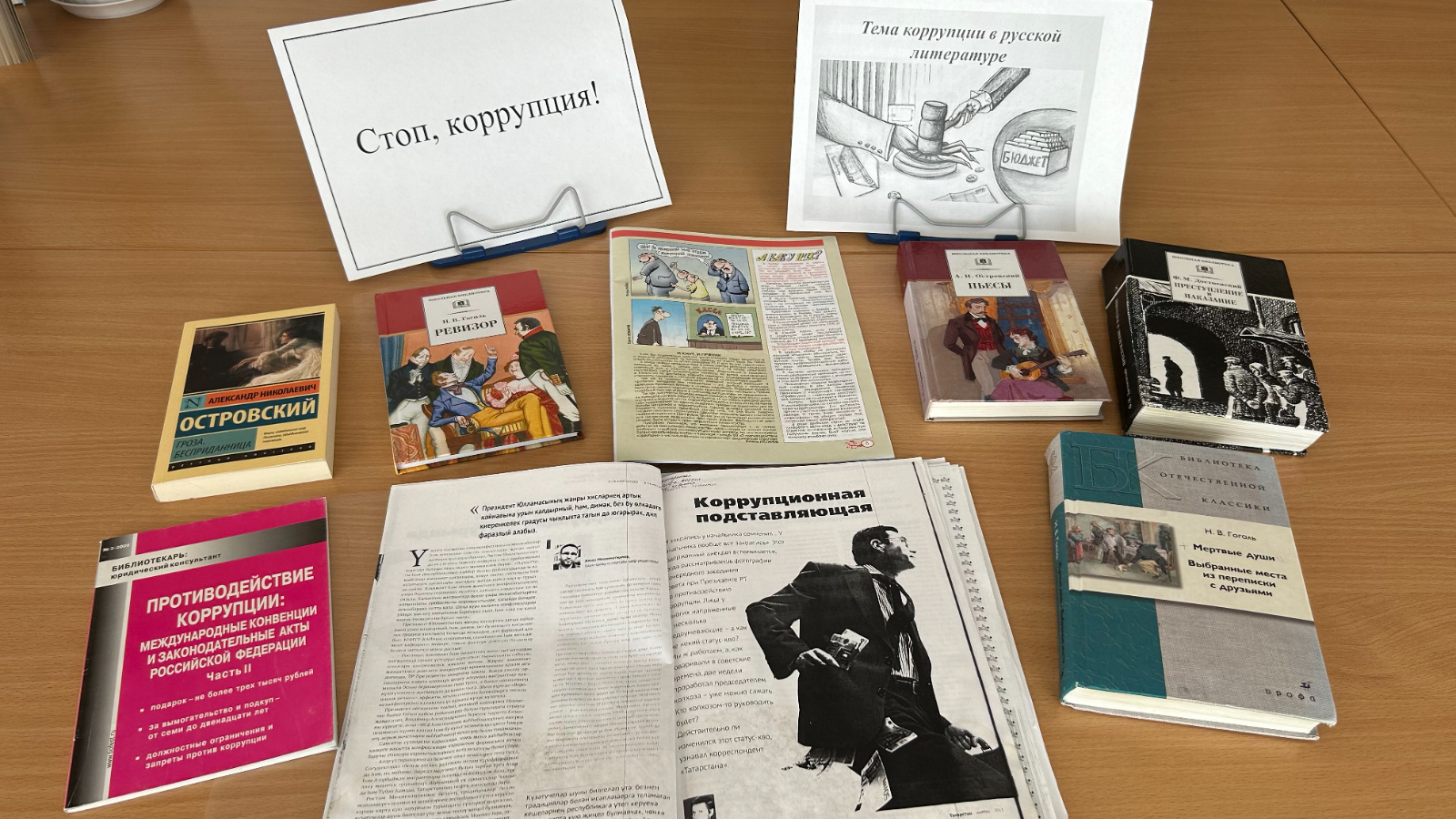 31 июль көнне Теләче җирлекара китапханәсендә коррупция, ришвәтчелек темасына багышланган “Стоп, коррупция!” исемле китап күргәзмәсе төзелде һәм күргәзмәгә куелган вакытлы матбугат материалларына күзәтү ясалды. Матур әдәбият әсәрләрендә коррупция темасын чагылдырылган Гогольның «Ревизор», «Мертвые души», Островскийның «Гроза. Бесприданница», Достоевскийның «Преступление и наказание» һ. б. әсәрләре урын алды.