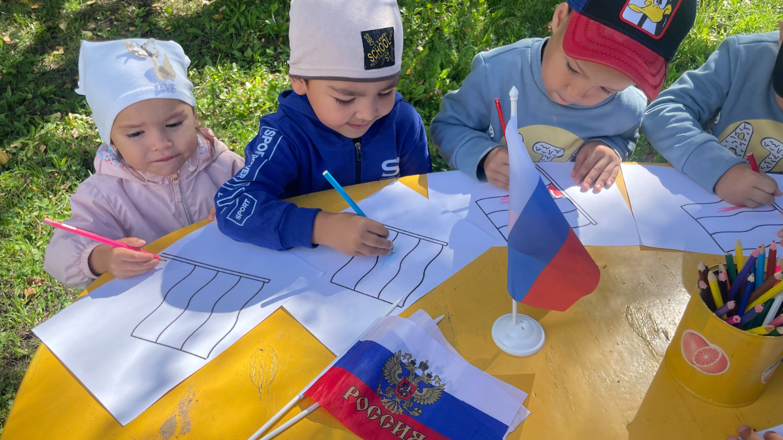 Балаларга үз Ватаны өчен горурлык хисен кечкенәдән үк тәрбияләргә кирәк. Китапханәче аңлаешлы һәм кызыклы формада, нәниләргә флагның нәрсә булуы һәм ни өчен аның һәр ил өчен шулкадәр мөһим булуы турында сөйләде. Балалар зур кызыксыну белән флагның да үз «туган көне» булуы турындагы хикәяне тыңладылар. Бу факт аларда чын-чынлап гаҗәпләнү һәм соклану уятты! Балалар Россия флагының ак, зәңгәр һәм кызыл төстәге өч полосадан торганын белделәр. Танып-белү әңгәмәсеннән соң, балалар иҗат процессына актив кушылдылар. Һәр балага Россия флагын буярга тәкъдим ителде. Кечкенә рәссамнар мавыгып, үз флагларын иң матур һәм пөхтә итеп ясарга тырышты.