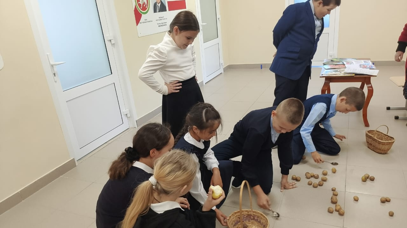 Балаларга кунакка кәрҗин тулы уңышларын төяп, көз кызы үзе килде. Китапханәче балаларга көзге айлар һәм аларның үзенчәлекләре, витаминлы җиләк-җимешләр турында сөйләде. Балалар көзнең матурлыгына сокландылар, шигырьләр, мәкальләр, әйтемнәрне искә төшерделәр, табышмакларга җавап бирделәр һәм күңелле уеннар уйнадылар. Ахырдан һәркайсы дәрестән тыш уку өчен, өйләренә китаплар яздырып алдылар. Бу сәгать балаларда көзнең матурлыгын һәм аның байлыкларын аңларга ярдәм итте, шулай ук укуга кызыксыну уятты.