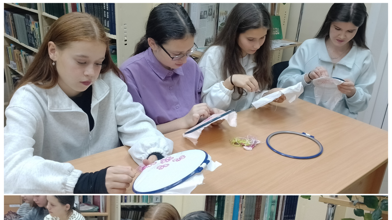 Тамбур чигүнең барлык нигезләрен белергә теләүчеләрне китапханәче китапханәгә җыйды. Ул аларга эш эзлеклелеген күрсәтте һәм тамбур чигүнең адымлы техникасын өйрәтте. Чара барышында "Милли стильдәге тамбурлы чигү" дигән күргәзмәгә күзәтү үткәрелде.