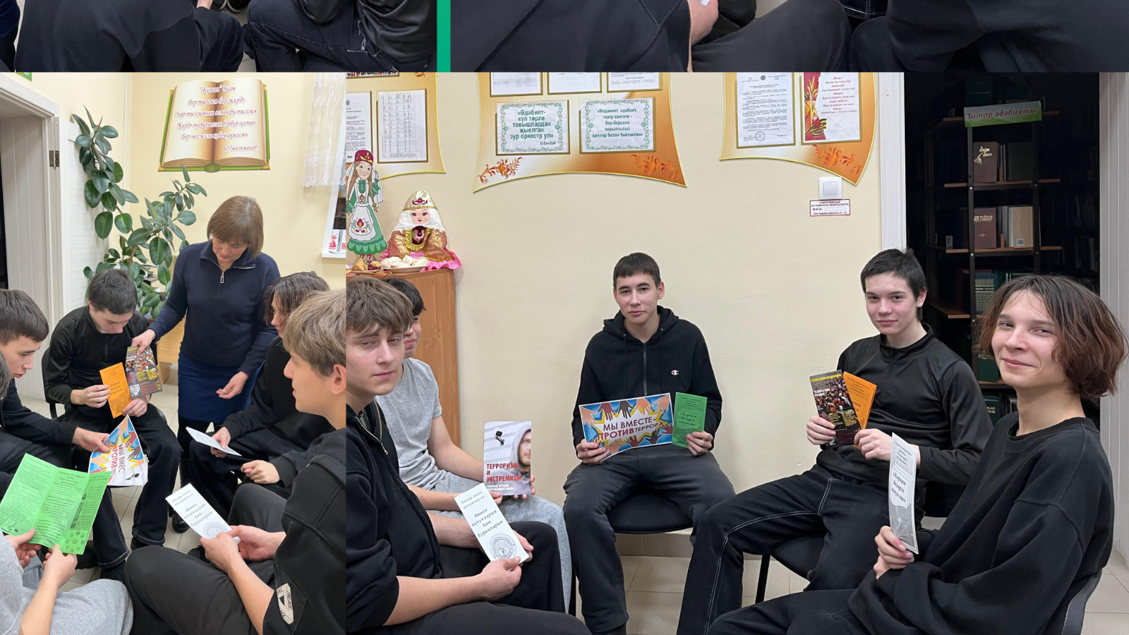 Террор — ул безнең һәрберебезгә турыдан-туры яки читтән кагылучы куркыныч күренеш. Акция кысаларында Айдар авылы китапханәсендә экстремизм һәм терроризм темаларына багышланган аралашу сәгате үткәрелде. Катнашучылар төрле тормыш шартларында кирәк булачак белемнәр алдылар. Әлеге чарада катнашучыларның барысына да куркынычсызлык кагыйдәләре турында “Моны һәркем белергә тиеш!” исемле буклетлар таратылды.