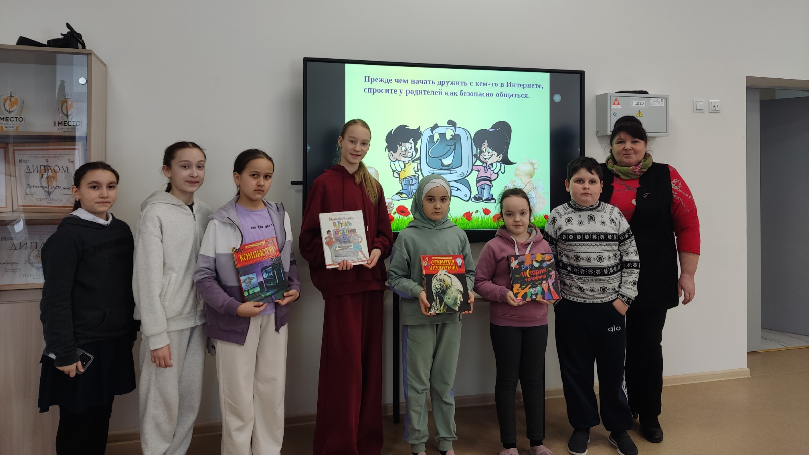 Глобаль челтәрдәге куркынычсызлык өлкәннәргә дә, балаларга да кагыла. 27 февральдә үткәрелгән чарада катнашучылар цифрлы дөньяга сәяхәт ясадылар, кулланучыларның нинди кагыйдәләрне үтәргә тиешлеген, шулай ук үзләрен мошенниклардан ничек сакларга кирәклеген белделәр. Китапханәче балаларга Интернет – ул даими рәвештә гаҗәеп тизлек белән тулылана торган мәгълүмат базасы, интернеты булган һәркем дөньяның теләсә кайсы ноктасыннан файдалана ала, дип сөйләде. Интернетта кызык та, куркынычсыз да була ала. Ләкин моның өчен берничә төп кагыйдәне белергә кирәк. Шулай ук балалар мошенниклар кулына эләкмәскә, вируслардан сакланырга һәм үз мәгълүматларын якларга, социаль челтәрләрнең һәм гомумән интернетның файдасы һәм зыяны турында тыңладылар. Ахырдан «Фиксики» сериясеннән «Имин интернет» мультфильмын карадылар.