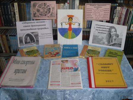 7 апрель– Бөтендөнья сәламәтлек көне. Шул уңайдан, Айдар авылы китапханәсендә “Сәламәт кеше-табигатьнең иң кыйммәтле җимеше” дип исемләнгән күргәзмә эшләде. Күргәзмәдә сәламәтлекне саклау һәм ныгыту юлларын, сәламәт яшәү рәвешен яктырткан китап-журналлар: белешмәлекләр, сәламәтлек көненә багышланган чаралар үткәрү өчен кирәкле булган сценарийлар урнаштырылды.